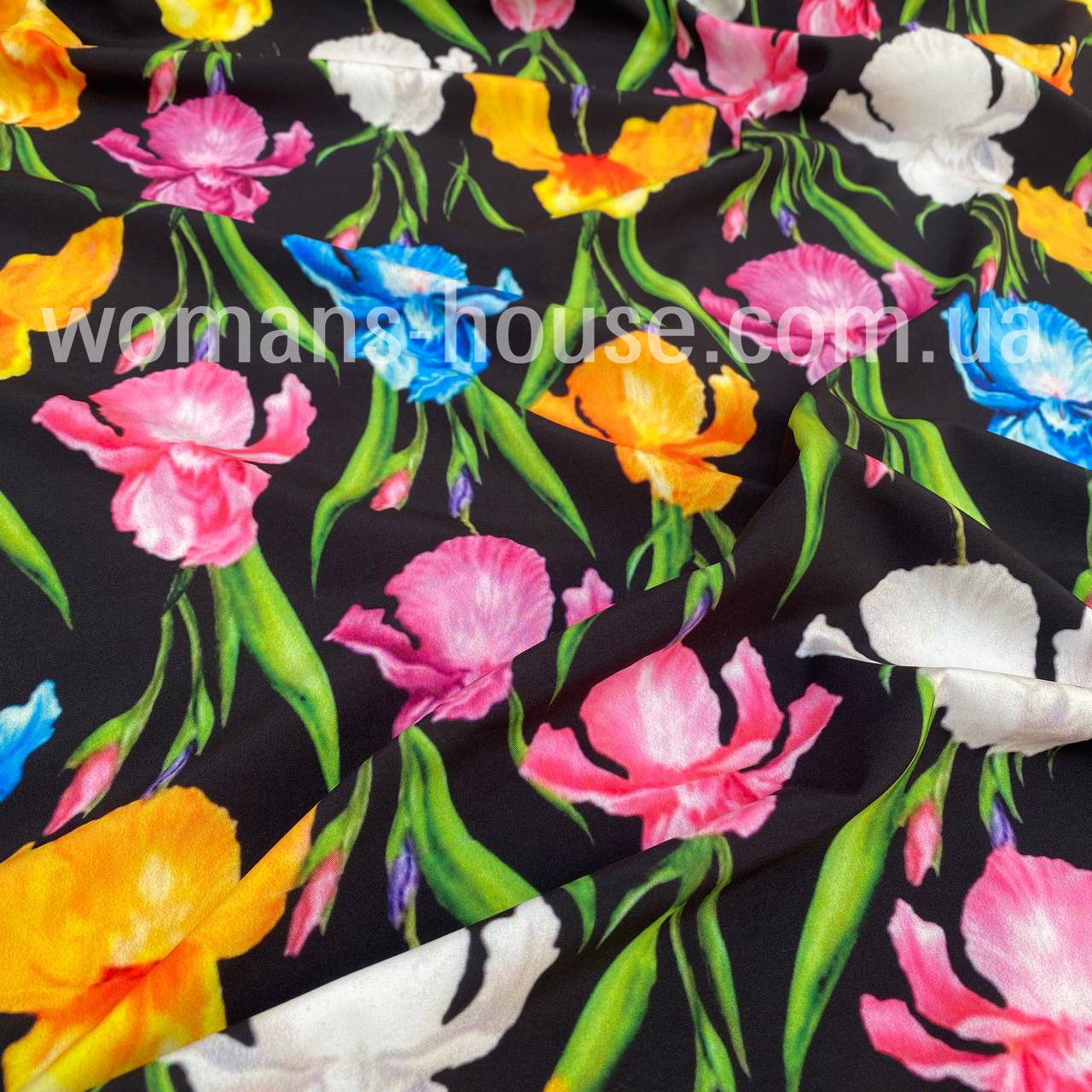 Софт друкований принт Квіти різнокольорові на чорному